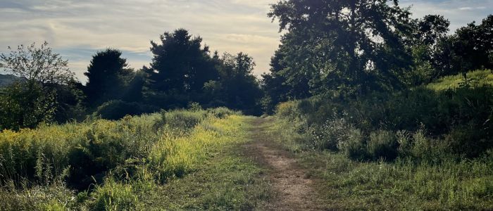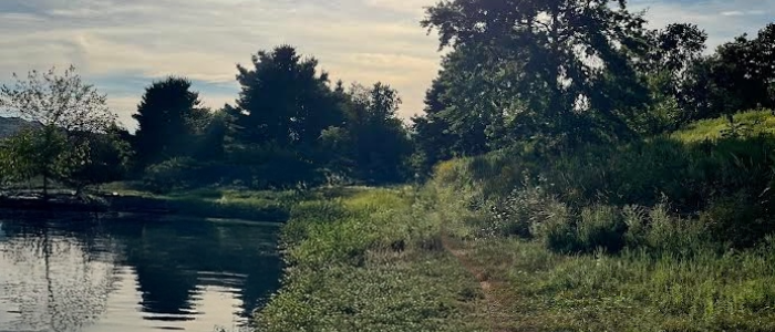 The second VR image set of now-and-then shows the Lake Hadley shoreline lapping against the current path running west from the top of the parking area to the trail down to Middle Street.